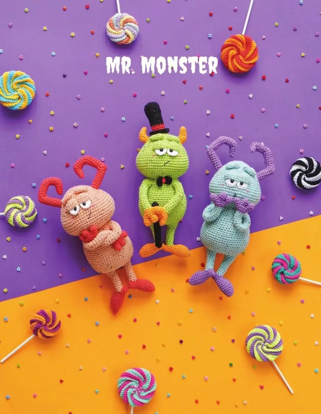 Crochet Pattern for Colorful Mr. Monster Amigurumi Trio