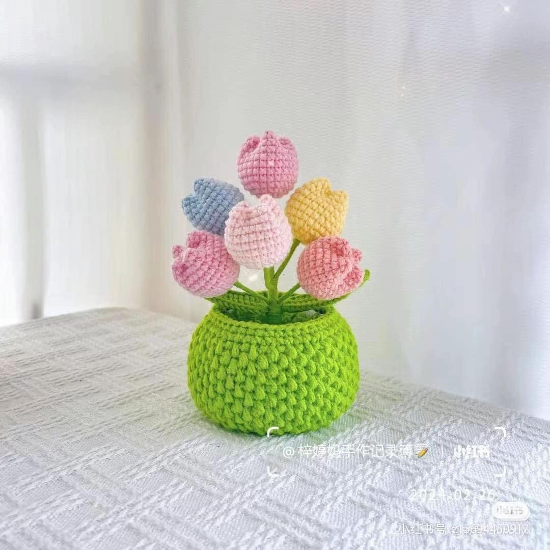 Crochet Pattern for Colorful Tulip Bouquet in a Vase