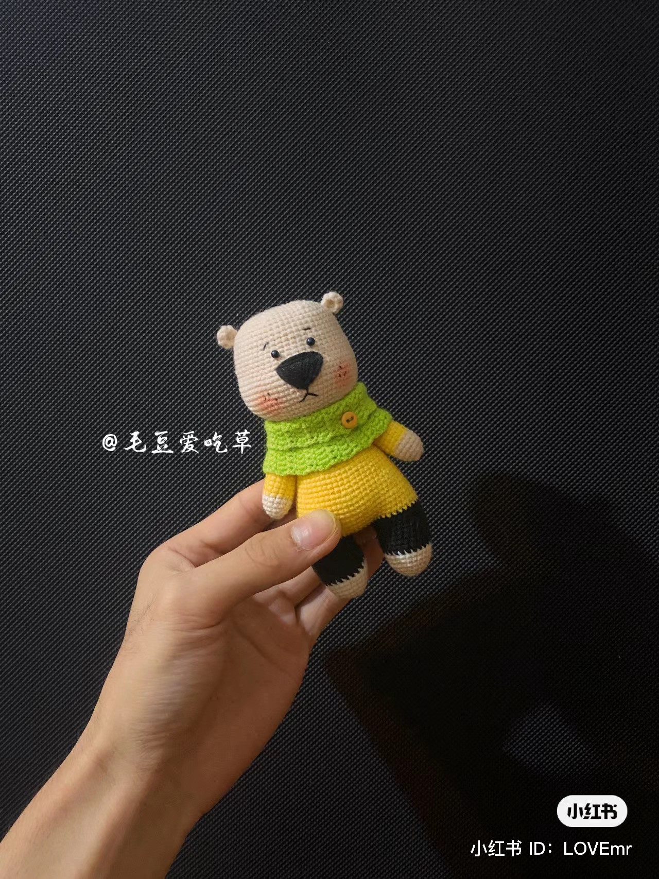 Crochet Pattern for Cute Bear in Yellow and Green Outfit