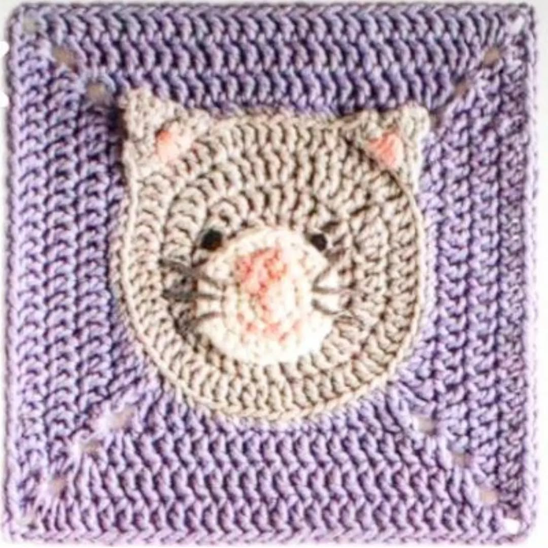 Crochet Pattern for Cute Cat Face Granny Square