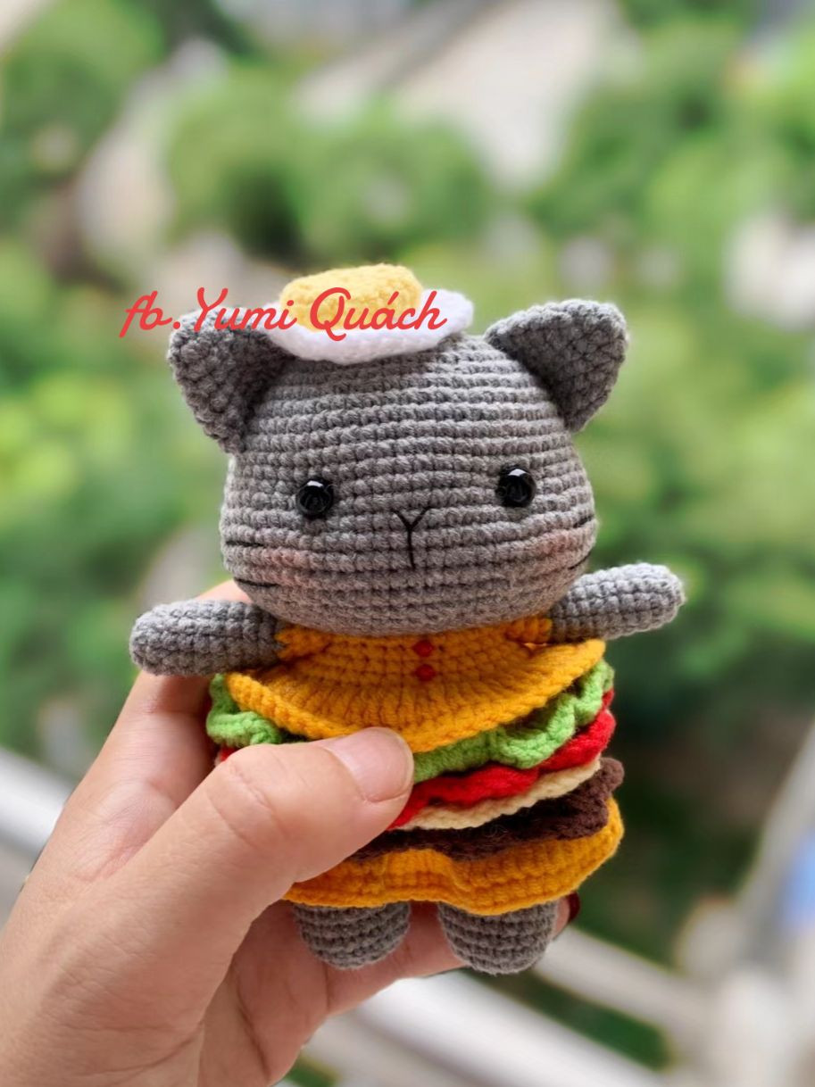Crochet Pattern for Cute Cat Hamburger Amigurumi Doll