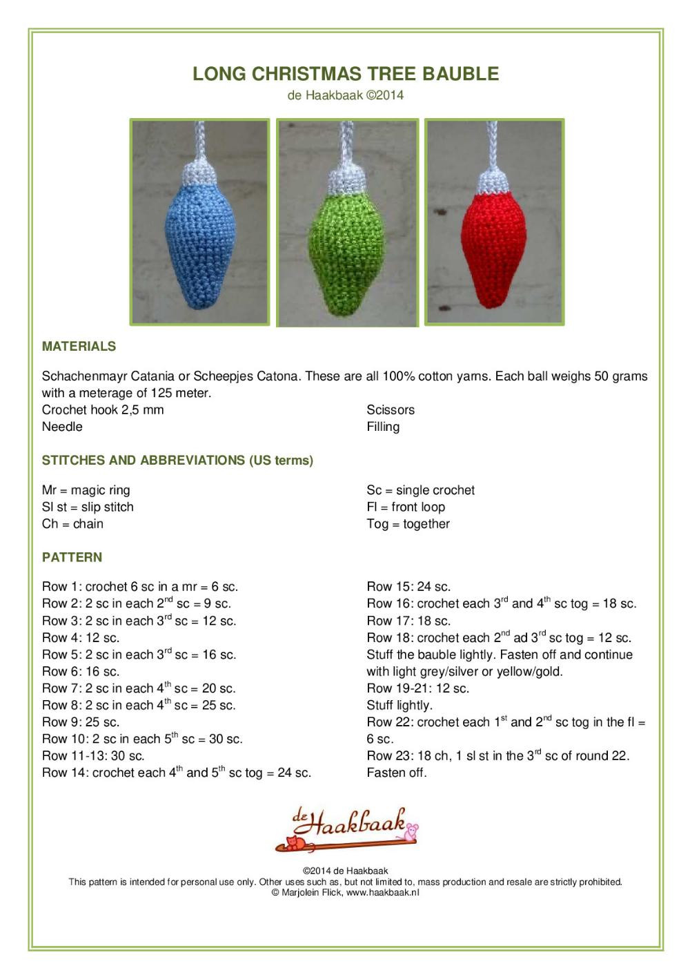 Crochet Pattern for Long Christmas Tree Bauble Decoration