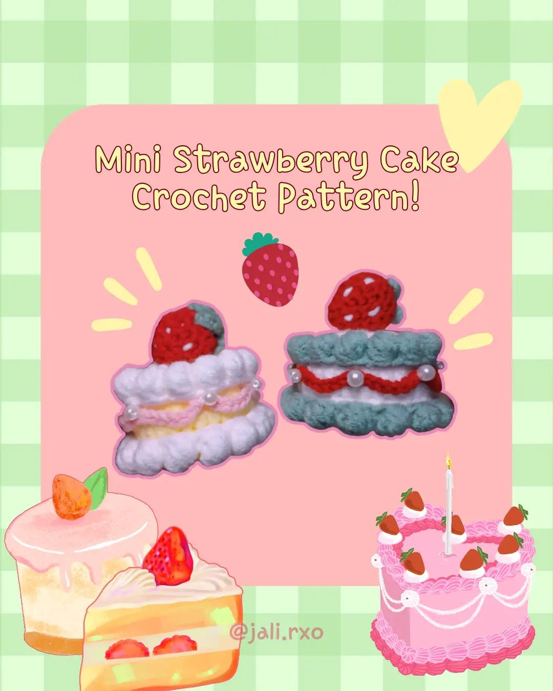 Crochet Pattern for Mini Strawberry Cake with Detailed Instructions