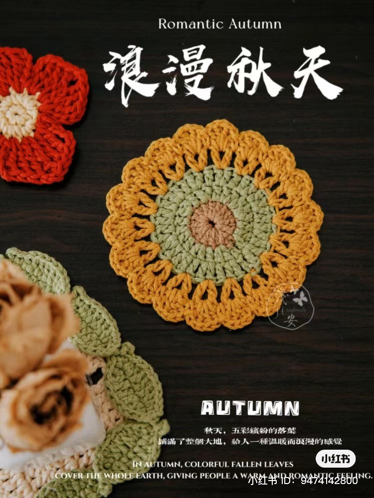 Crochet Pattern for Romantic Autumn Floral Coasters