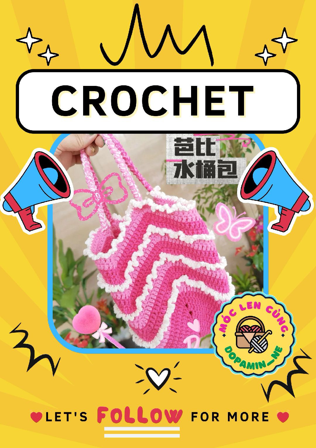 Crochet Pink and White Zigzag Bag Pattern Tutorial