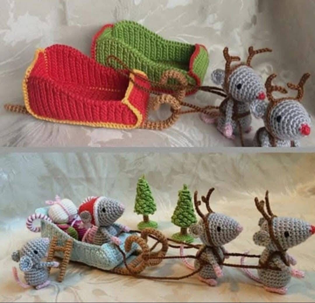 Crochet Reindeer and Sleigh Set for Christmas Decoration