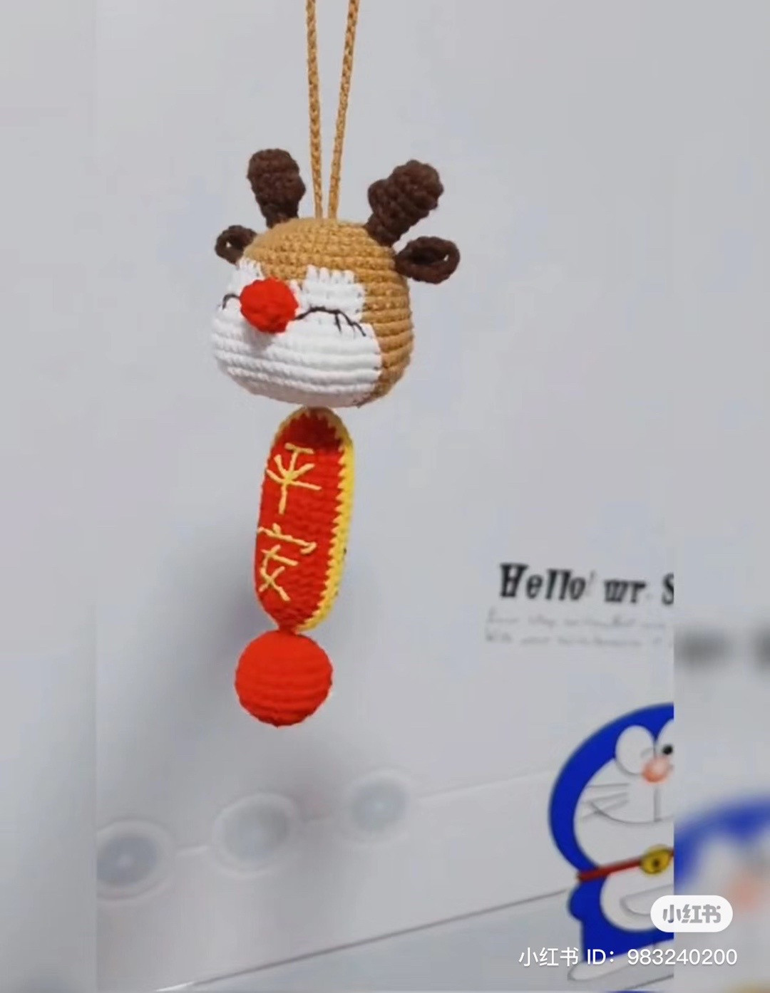 Crochet Reindeer Charm with Red Nose and Festive Banner