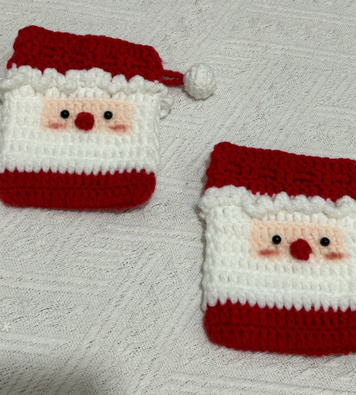 Crochet Santa Claus Face Pouch for Christmas Gifts
