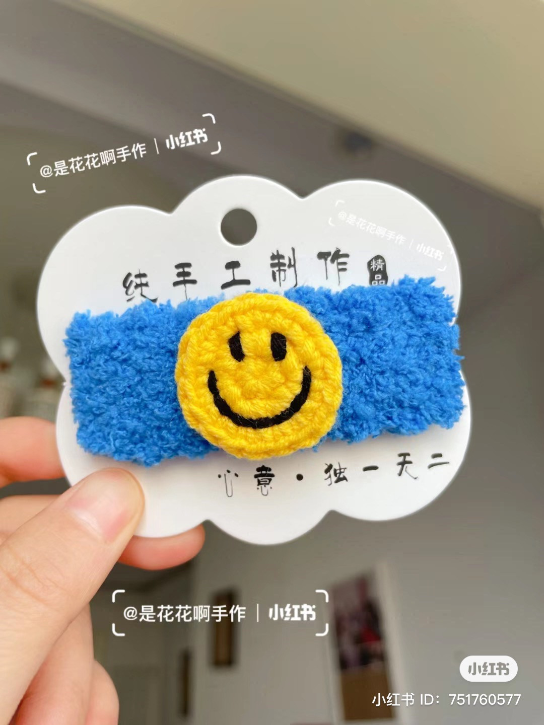 Crochet Smiley Face Hairband with Blue and Yellow Colors