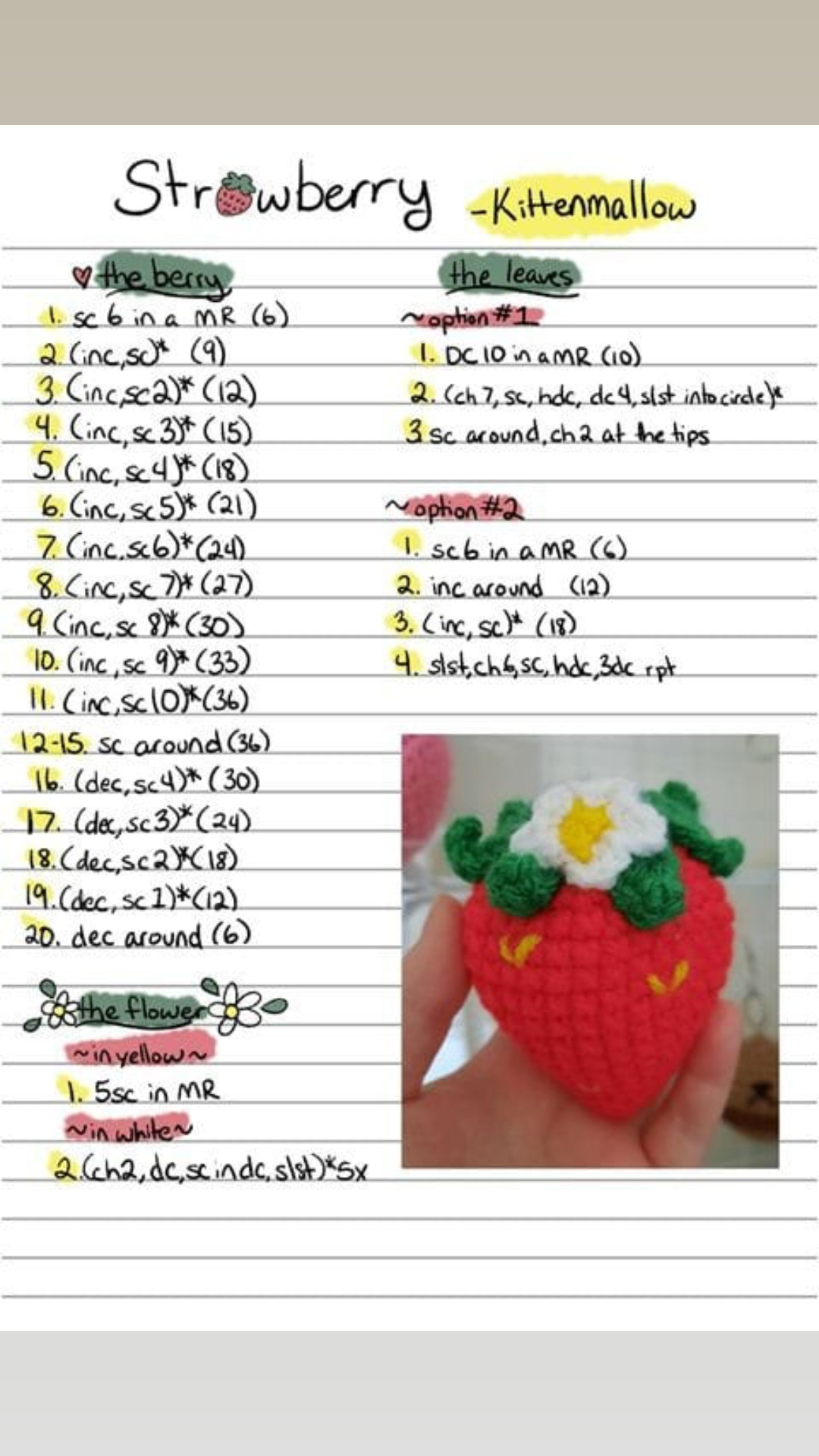 Crochet Strawberry Amigurumi Pattern with Leaves and Flower Details