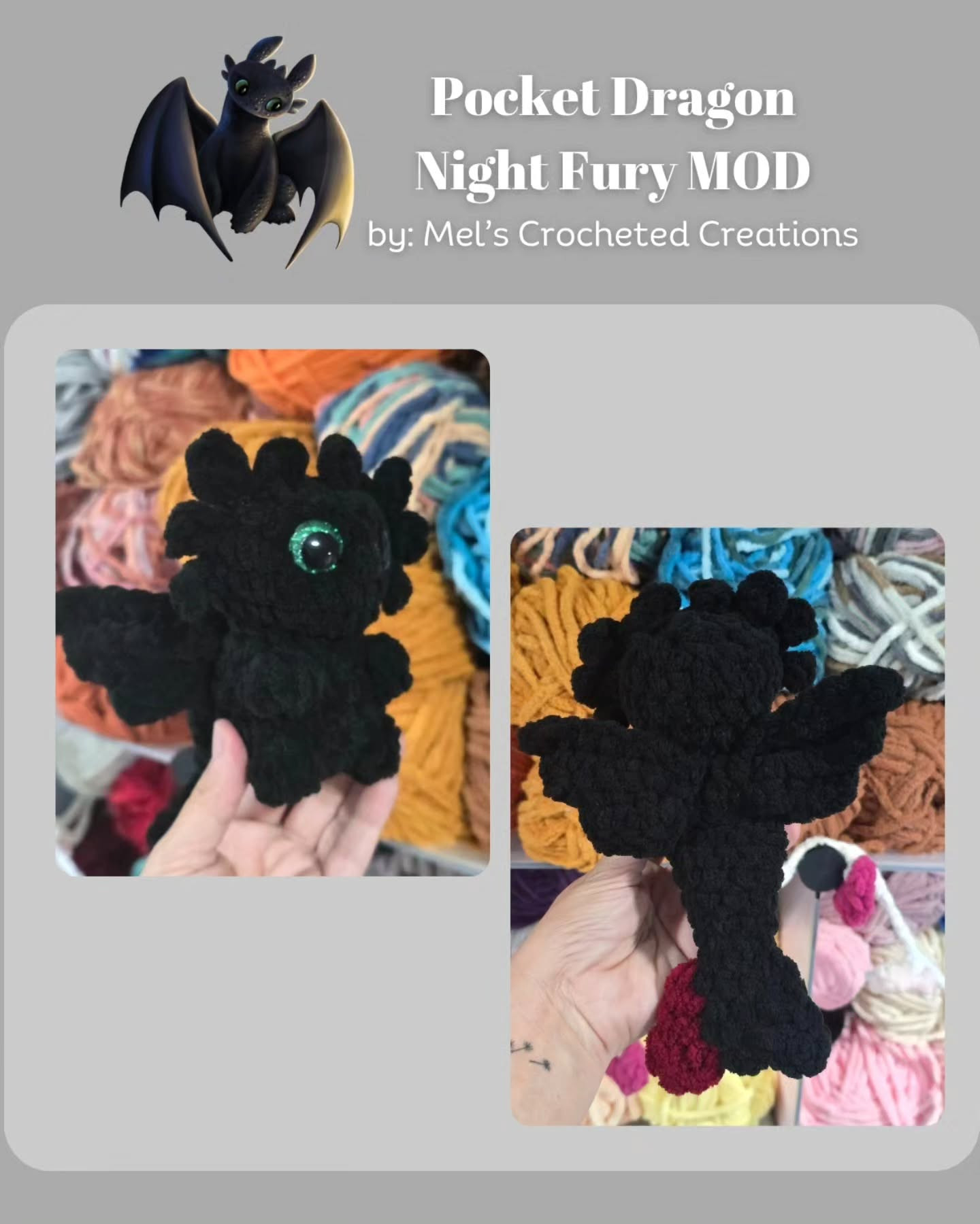 Crochet Your Own Pocket Dragon: Night Fury MOD Pattern