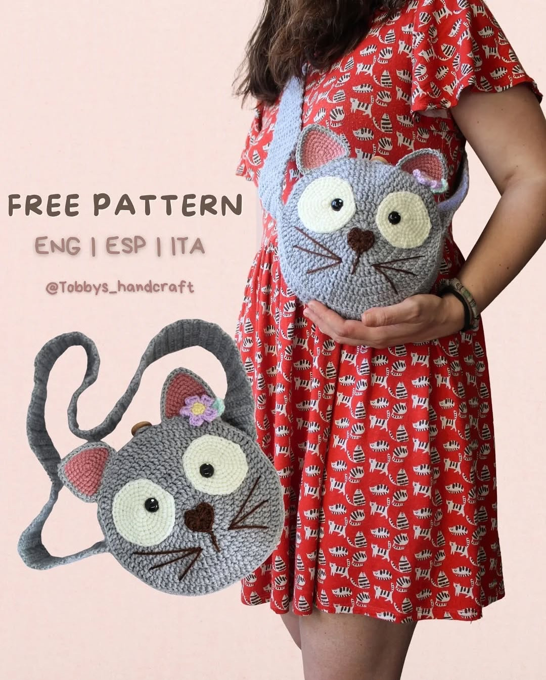 Cute Cat Shoulder Bag Crochet Pattern in Multiple Languages