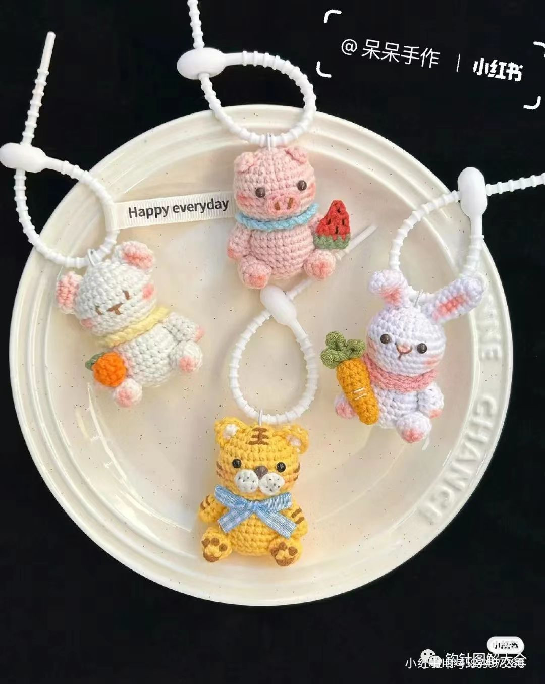 Cute Crochet Animal Keychains with Fruits and Vegetables