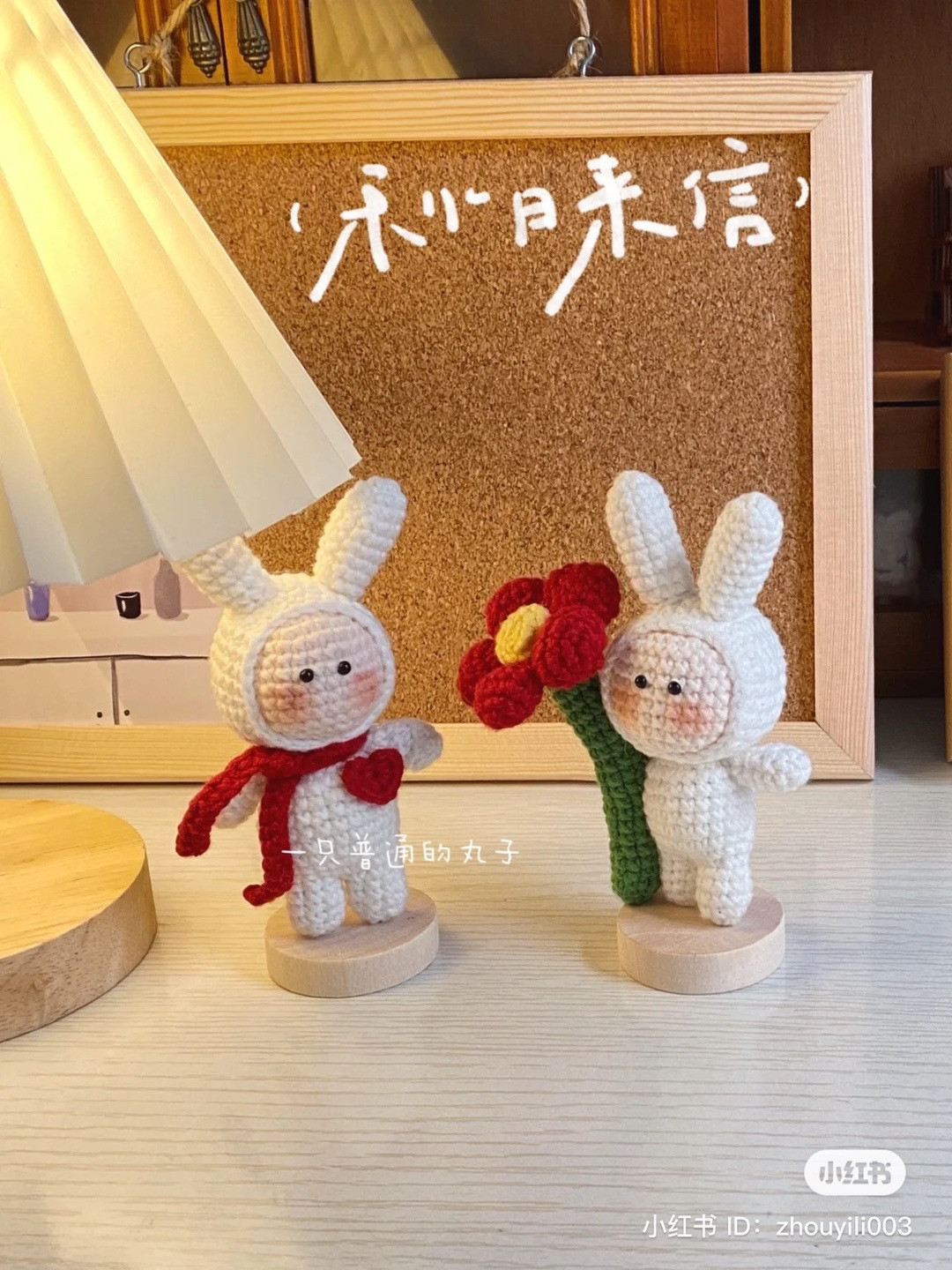 Cute Crochet Bunnies with Flower and Scarf Pattern