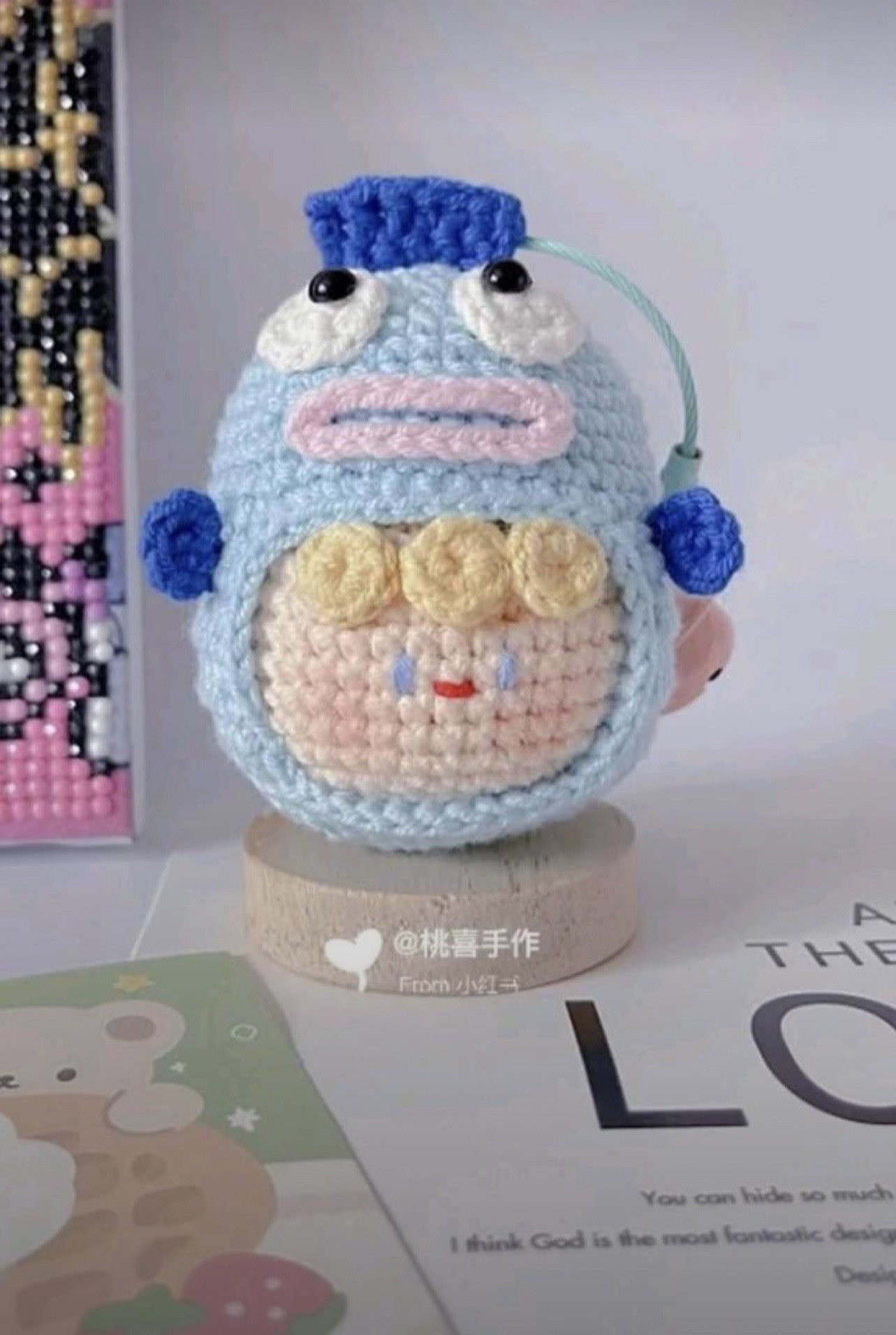 Cute Crochet Doll with Fish Hat and Blush Cheeks