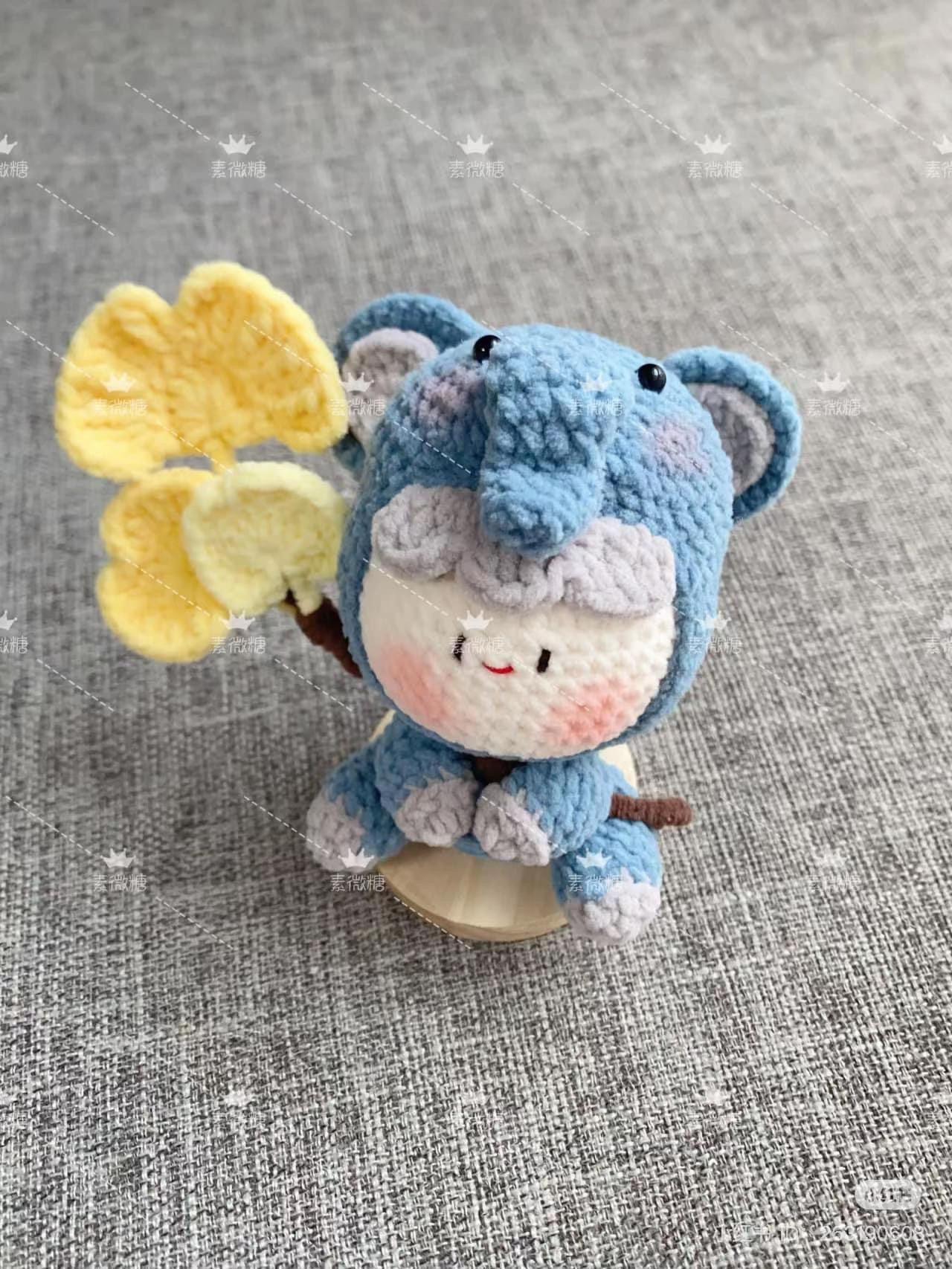 Cute Crochet Elephant with Yellow Flower Pattern