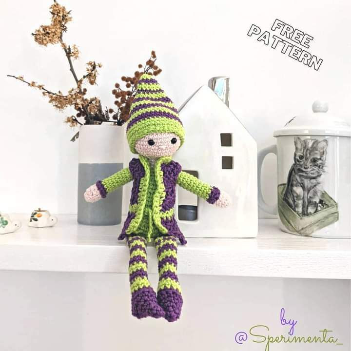 Cute Crochet Elf Doll with Striped Outfit Pattern