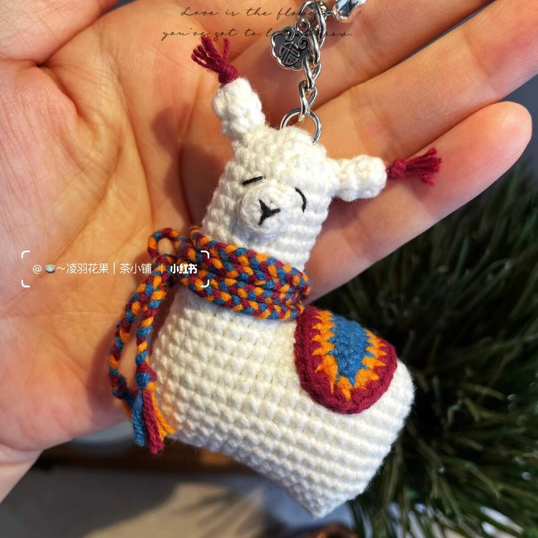 Cute Crochet Llama Keychain with Colorful Scarf Pattern