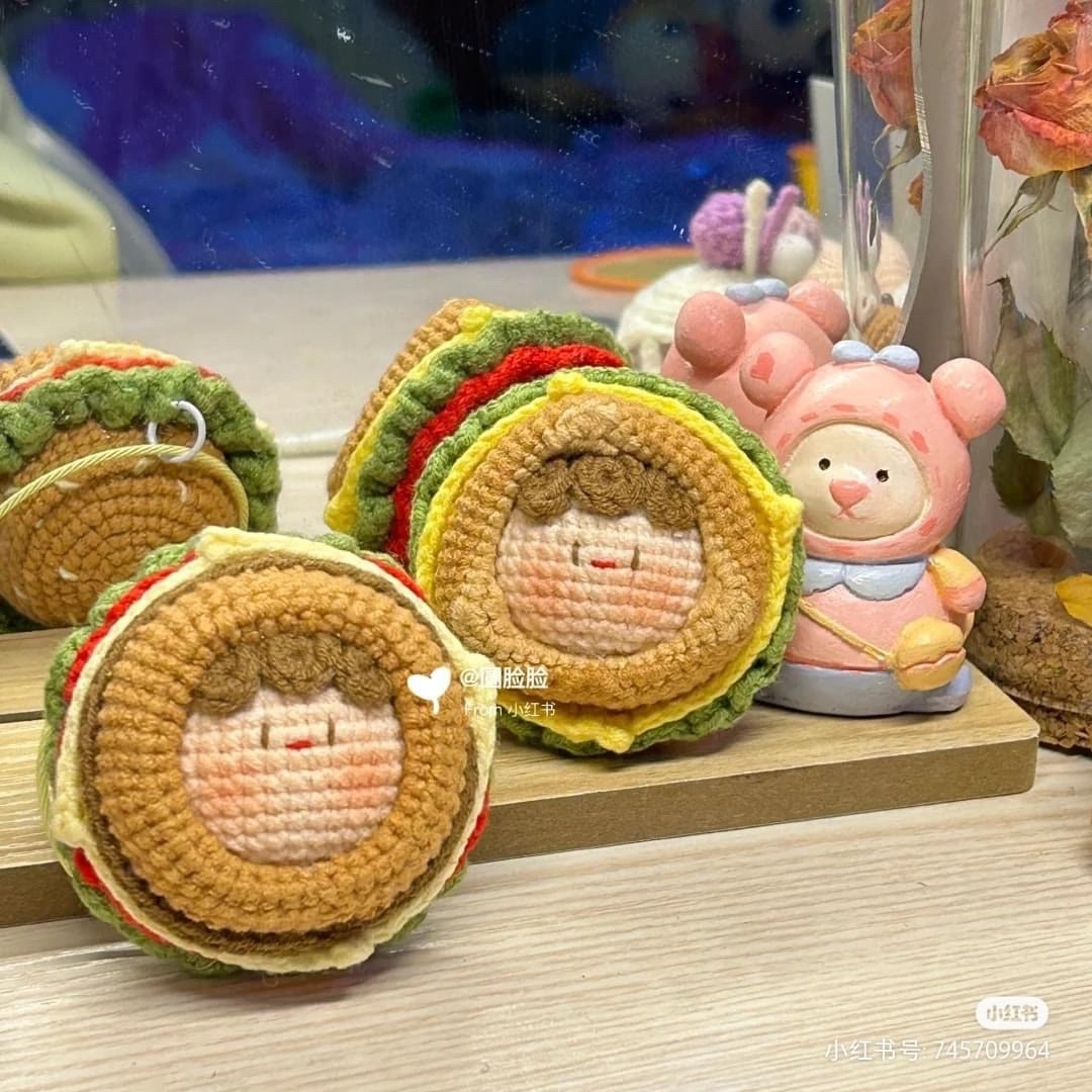 Cute Crochet Sandwich Keychains with Smiling Faces