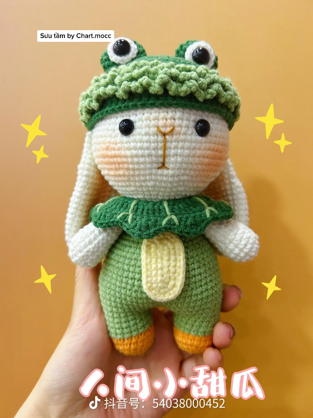 Cute Crocheted Bunny in Frog Outfit Amigurumi Pattern