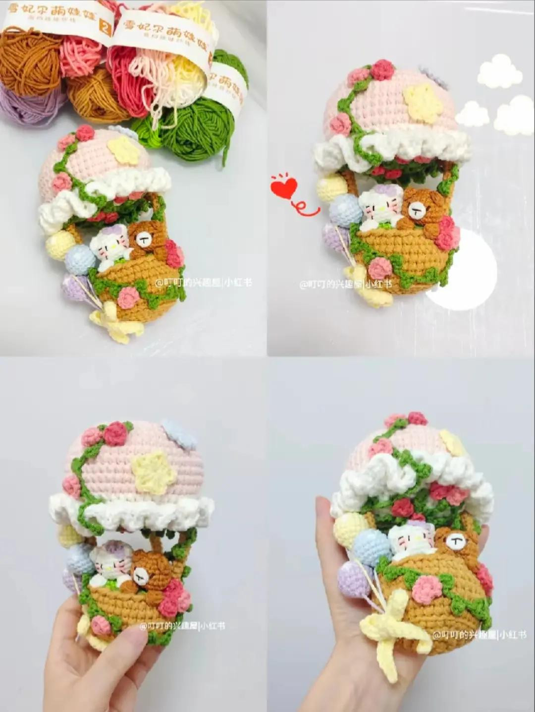 Cute Crocheted Hot Air Balloon with Animals Pattern
