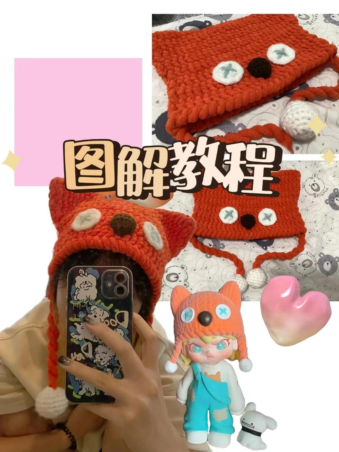Cute Fox Hat Crochet Pattern with Ears and Pom-Poms