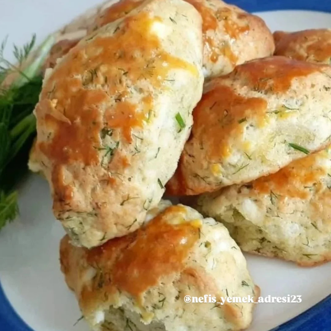 MALZEMELER 1 çay bardağı süt 1 su bardağı beyaz peynir 1 çay bardağı sıvı yağ 2 yemek kaşığı tereyağı 2yumurta(birinin sarısı üstüne) 1 demet dereotu 1 tatlı kaşığı tuz 2 paket kabartma tozu Alabildiğince un 👉YAPILIŞI Bütün malzemeleri derin bir kapta karıştırıyoruz.Azar azar ununu ilave edip yoğuruyoruz.Gayet yumuşak bir hamur elde ediyoruz.Sonra yağlı kağıt serdiğimiz fırın tepsisine şekil verip diziyoruz.Üzerine yumurta sarısını sürüp 180 dereceli fırında 20 dk.pişiriyoruz.AFİYET OLSUN