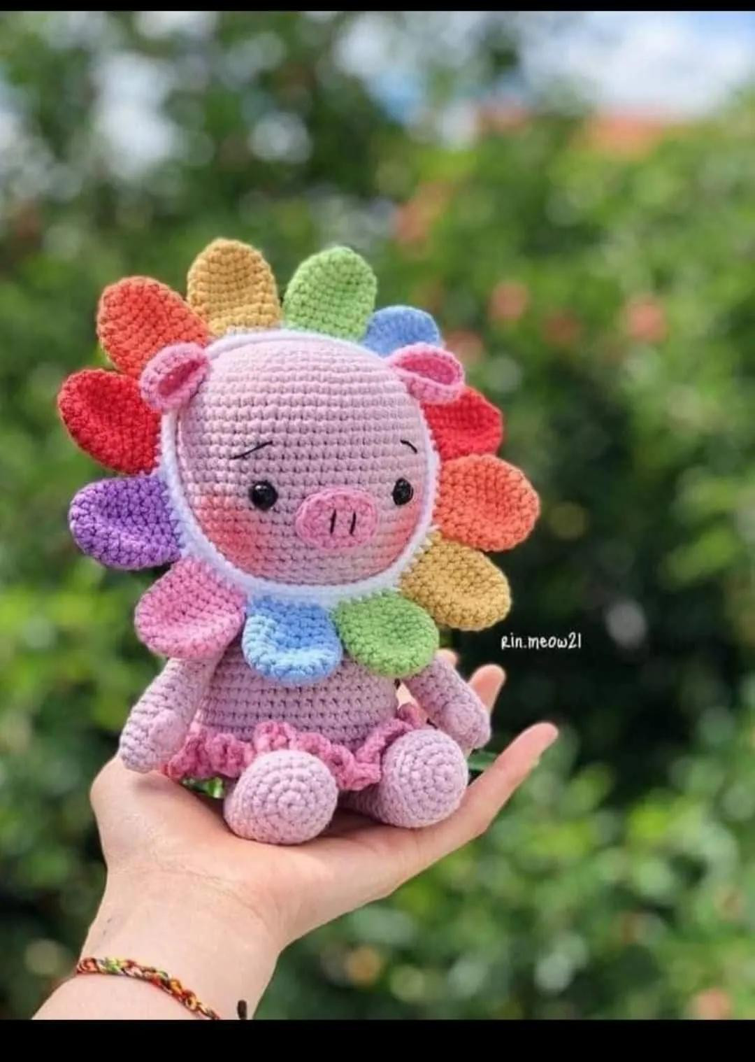 Dulce cerdito arcoíris tejido a mano para alegrar tu día