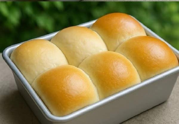 After one hour, the dough will be done rising. Take out the dough and deflate it, then divide it into eight parts. Round each portion of the dough and place it in the lightly greased(buttered) baking pan.