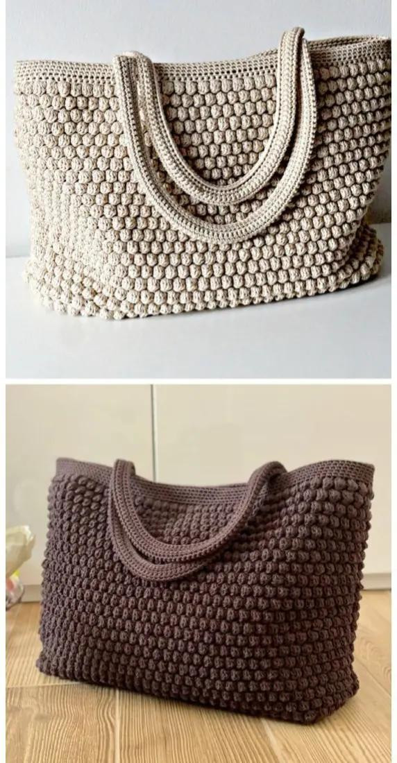 Elegant Crochet Tote Bag with Textured Bobble Stitch Design
