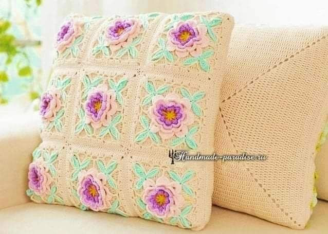 Floral Crochet Pillow Pattern with Pastel Flowers