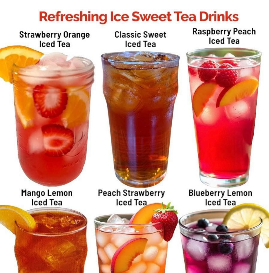 Ingredients: 5 black tea bags (or 2 family-size) 4 cups hot water (for steeping) 3–4 cups cold water (for diluting) ½ cup sugar or honey (adjust to taste) 1 cup fruit puree, nectar, or juice (see variations below) Ice cubes Fresh fruit slices for garnish