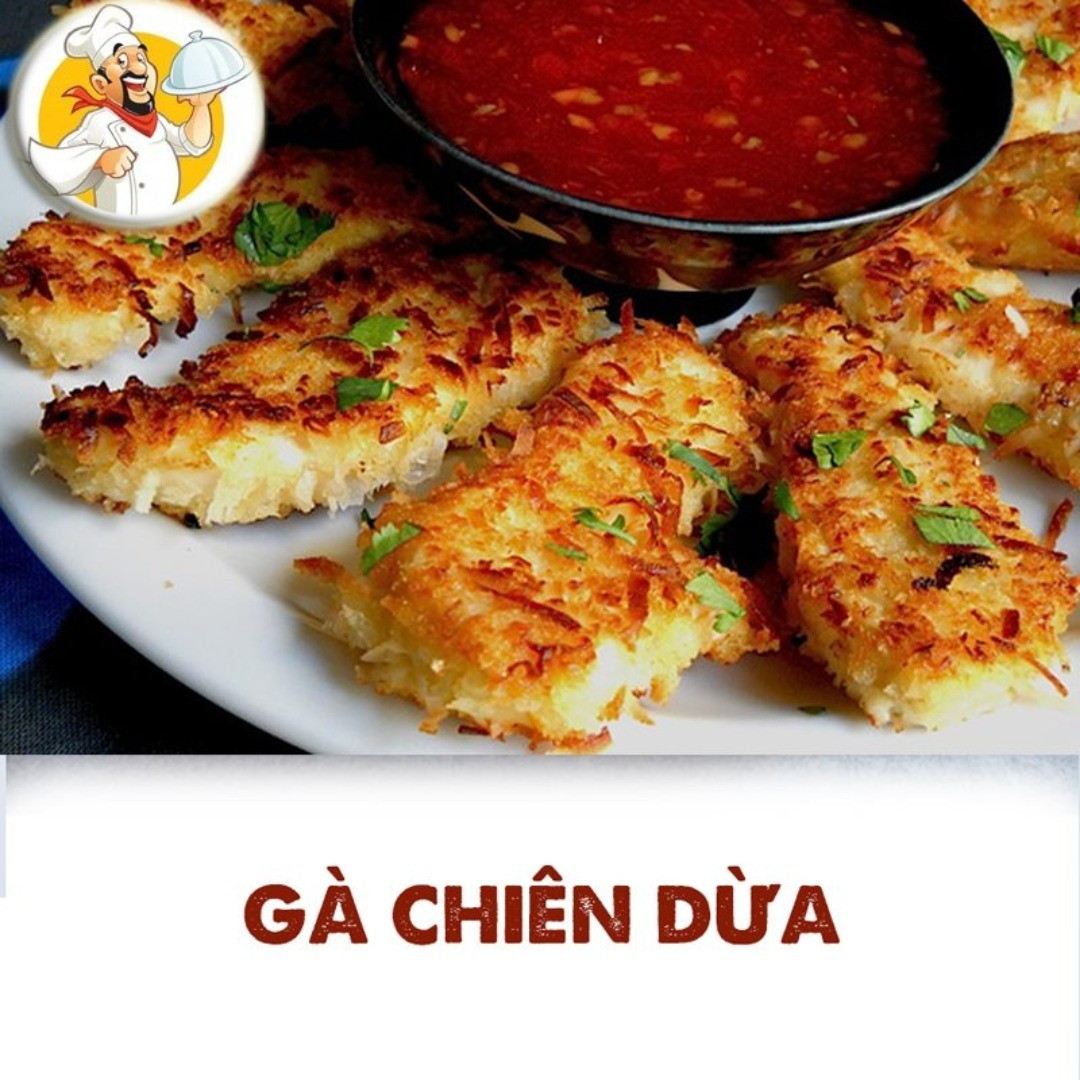 Chuẩn bị 3 bát lớn. Bát thứ nhất trộn bột mì với muối tiêu và bột hành tỏi. Bát thứ 2 trộn bột chiên xù và dừa nạo. Đánh tan trứng vào bát thứ 3.
