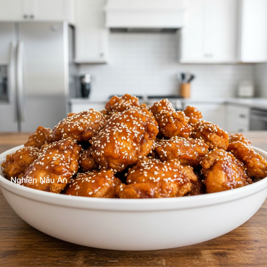 GÀ VIÊN SỐT CAM GIÒN RỤM, CHUA NGỌT, THƠM PHỨC MÊ LY! Món gà viên sốt cam là sự kết hợp hoàn hảo giữa lớp vỏ giòn rụm, thịt gà mềm ngọt bên trong và nước sốt cam chua ngọt đậm đà, thơm lừng mùi gừng tỏi và mè rang. Cực kỳ thích hợp cho bữa cơm gia đình hoặc làm món nhậu lai rai cuối tuần! Nguyên liệu cần chuẩn bị: - Ức gà: 500g (cắt miếng vuông vừa ăn) - Nước cam: 70ml (chia 20ml để ướp, 50ml làm sốt) - Bột bắp: 30g - Bột mì: 80g - Mè rang: 1 thìa - Gừng, tỏi băm: mỗi loại 1 thìa - Mật ong: 1 thìa - Gia vị: nước tương, tiêu, đường, ớt bột, giấm - Dầu ăn: để chiên Các bước thực hiện: 1. Ướp gà - Rửa sạch ức gà, thấm khô rồi cắt miếng vuông. - Ướp với 20ml nước cam, 2 thìa nước tương, gừng tỏi băm và chút tiêu trong 30 phút. 2. Chuẩn bị bột chiên - Trộn đều bột mì, bột bắp và 100ml nước thành hỗn hợp sánh mịn. 3. Chiên gà - Nhúng từng miếng gà vào hỗn hợp bột, thả vào chảo dầu nóng. - Chiên đến khi vàng giòn thì vớt ra để ráo dầu. 4. Làm sốt cam - Pha nước sốt gồm: 2 thìa nước tương, 1 thìa mật ong, 50ml nước cam, 1 thìa đường, 4 thìa giấm, 1 thìa ớt bột và 1 thìa gừng tỏi băm. - Đổ vào chảo, đun nhỏ lửa đến khi sốt sánh lại. 5. Áo sốt cho gà - Cho gà chiên vào chảo sốt, đảo đều cho thấm đều. - Tắt bếp, rắc mè rang lên trên. Thành phẩm: Gà viên vàng giòn, thấm đẫm sốt cam chua ngọt, thơm lừng mùi gừng tỏi và mè rang ăn kèm cơm nóng hay dùng làm món nhậu đều “hết sẩy”! Chúc cả nhà thành công với món gà viên sốt cam chua ngọt lạ miệng này nhé!