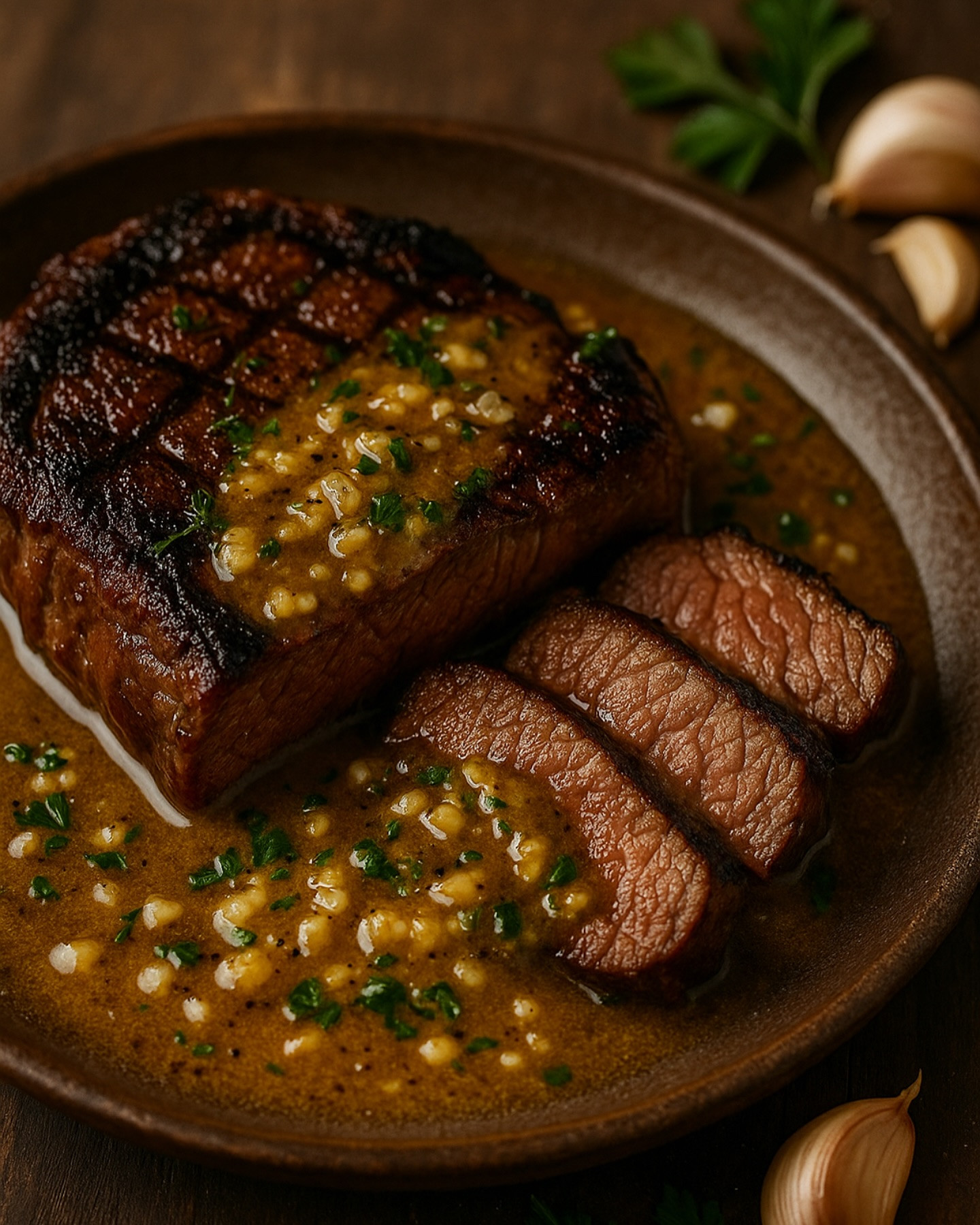Garlic Butter Steak Juicy, seared steak drenched in a rich garlic butter sauce — the kind of flavor that makes you close your eyes with the first bite.