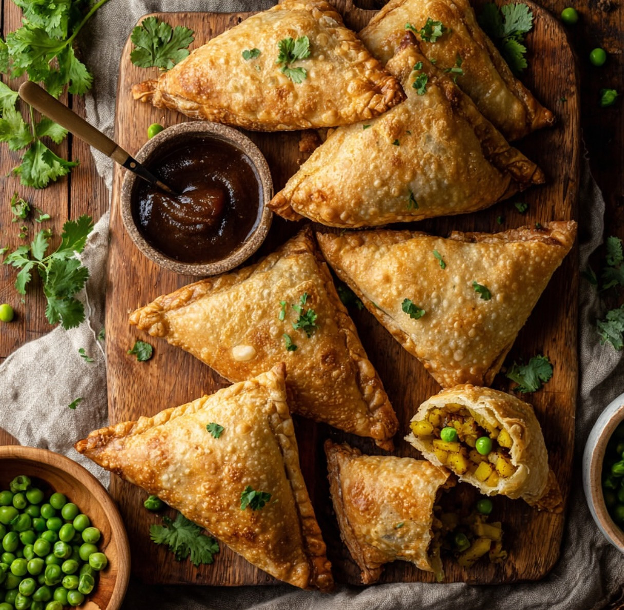 Golden Baked Samosas with Spiced Potato and Pea Filling