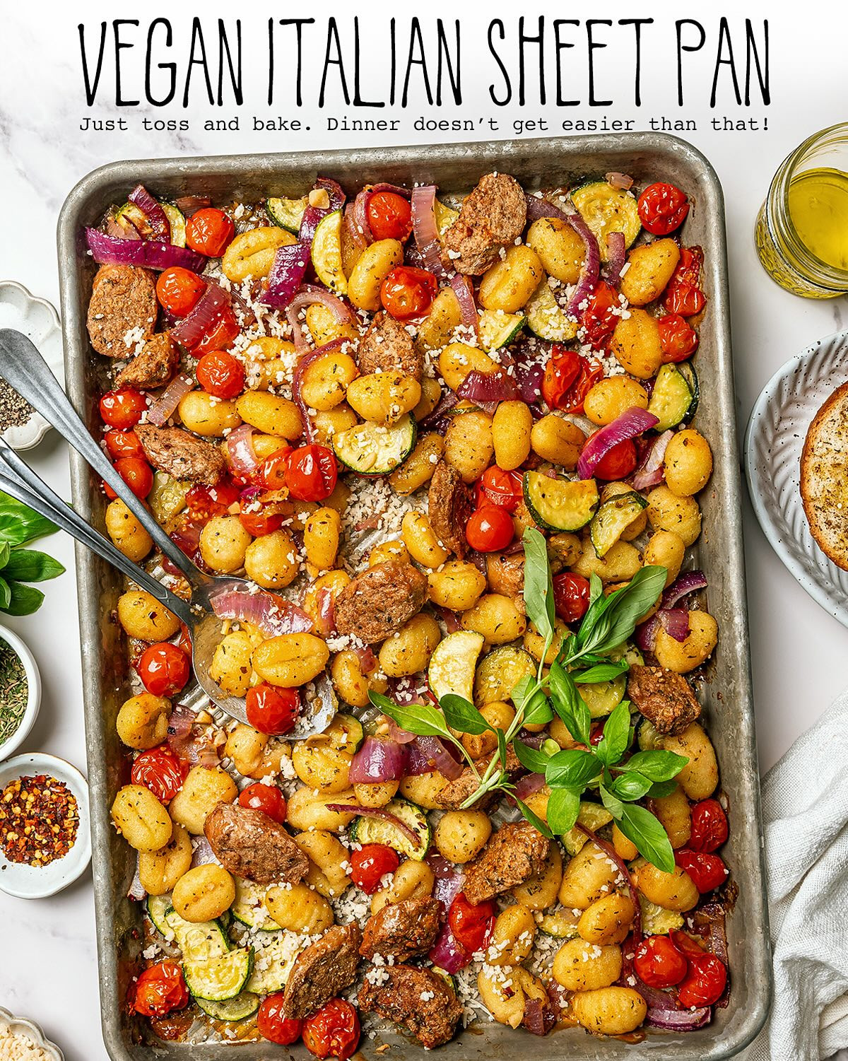 Golden Vegan Gnocchi with Herbed Sausage and Caramelized Vegetables