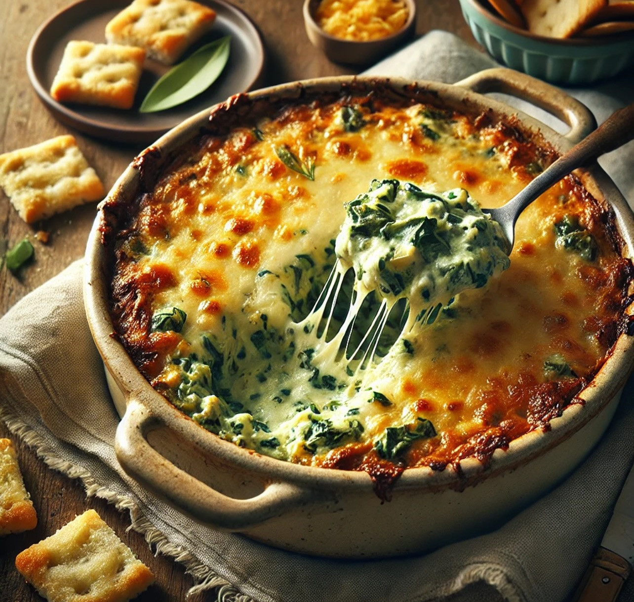 This is the kind of dip that disappears in minutes: gooey, cheesy, rich, and packed with flavor. It’s creamy on the inside, golden on top, and loaded with garlic, spinach, artichokes, and cheese pulls in every bite.
