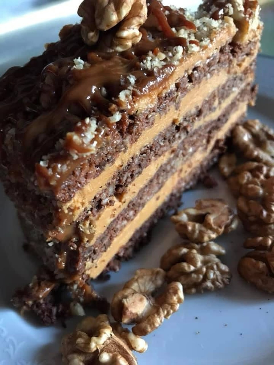 Горіхово-шоколадний торт з кремом згущеного молока