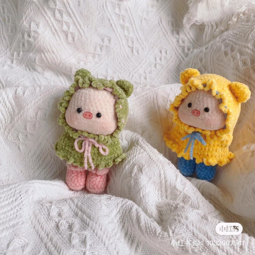 Hai chú lợn bông đáng yêu trong trang phục len thú vị