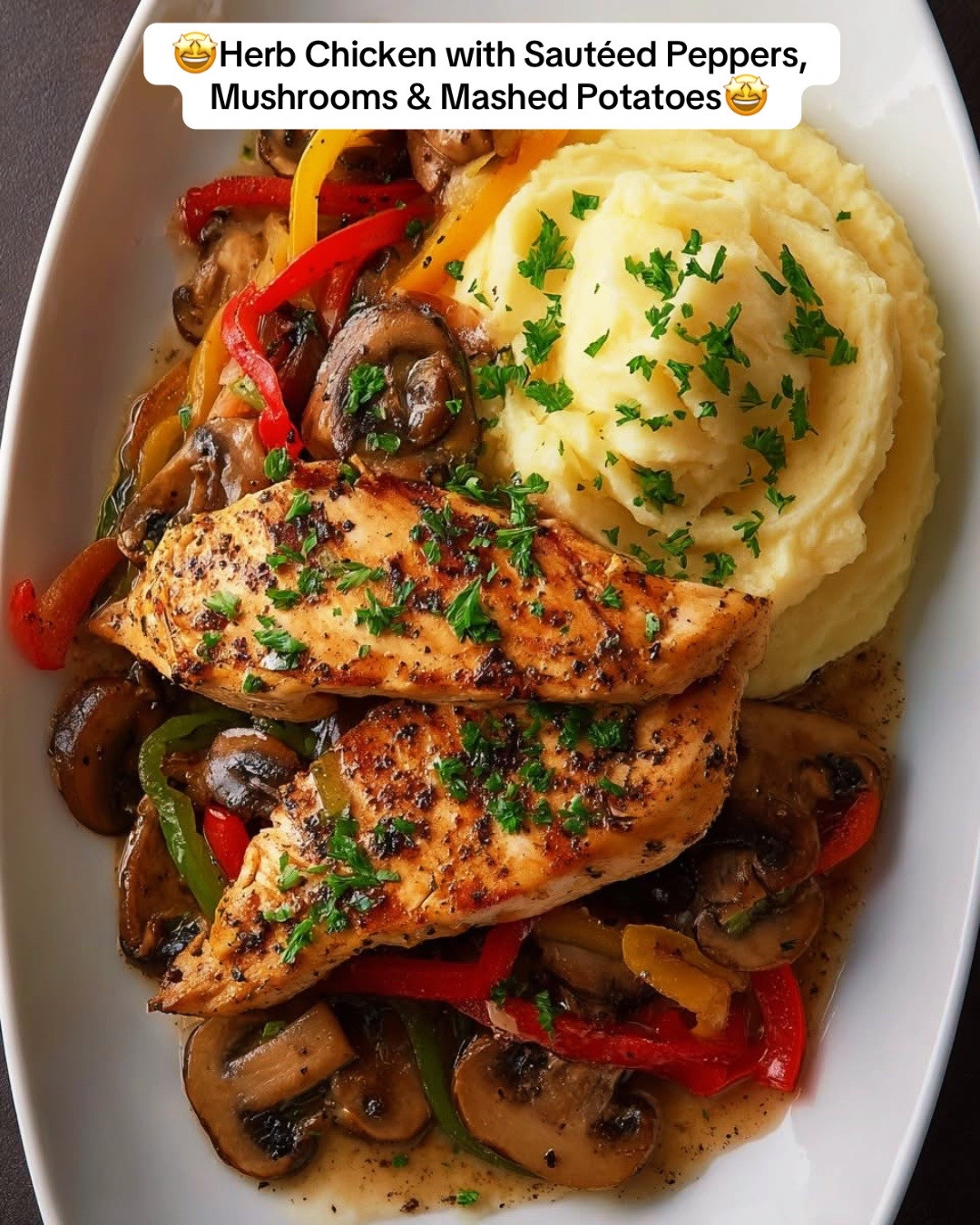 🍗🥔 Herb Chicken with Sautéed Peppers, Mushrooms & Mashed Potatoes 🌿🍄