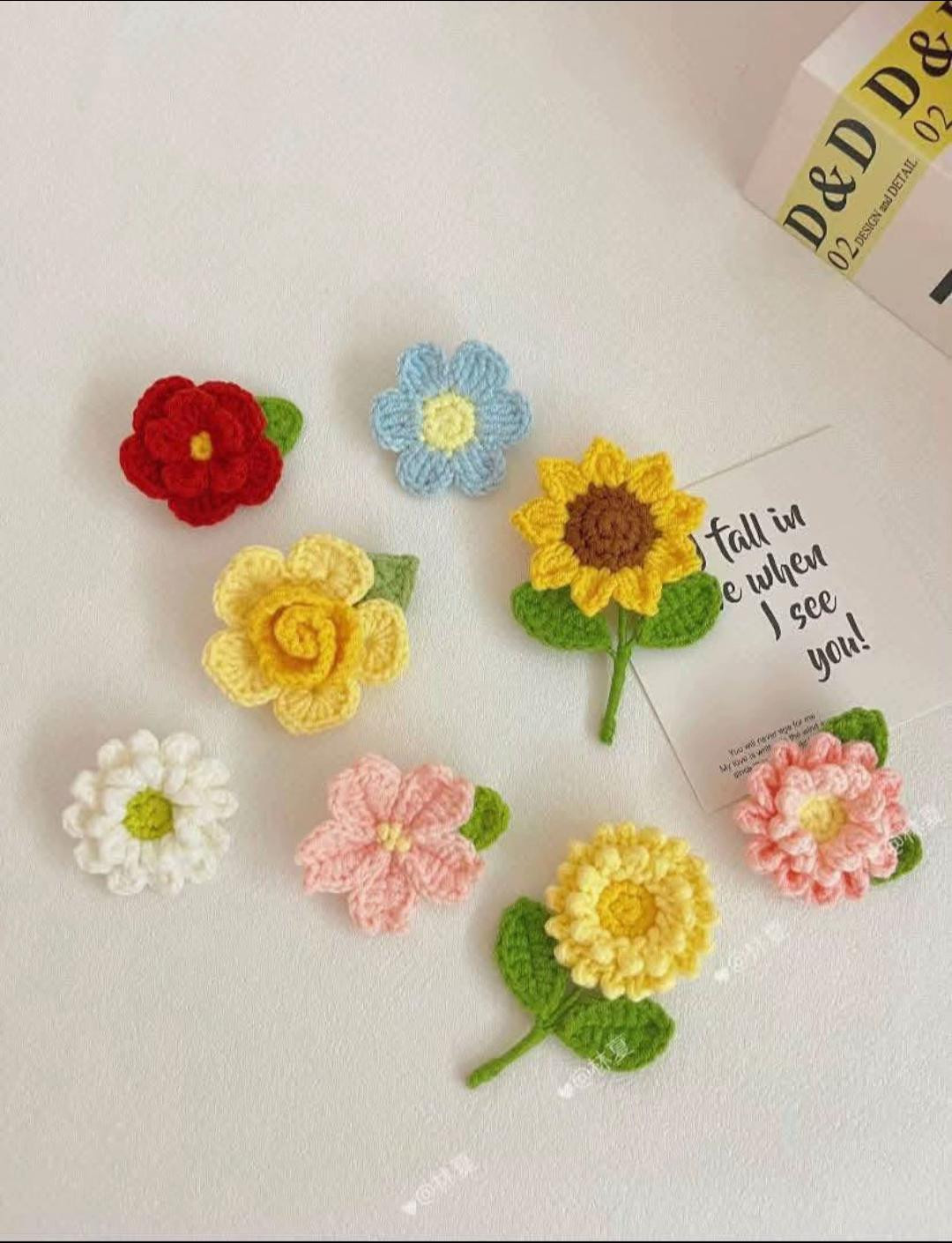 - hoa tra đỏ, hoa hồng 2 lớp, hoa nhỏ màu xanh, hoa cúc,