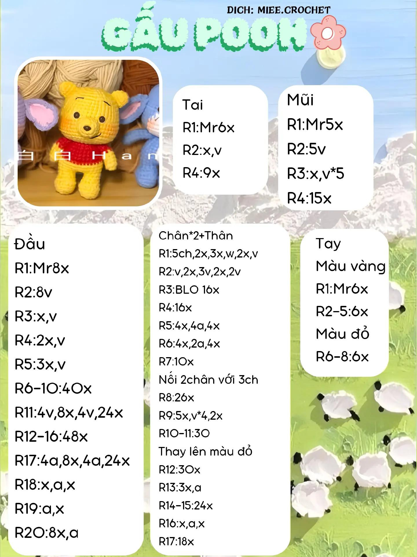 Hướng dẫn chi tiết móc len gấu Pooh đáng yêu cho người mới bắt đầu