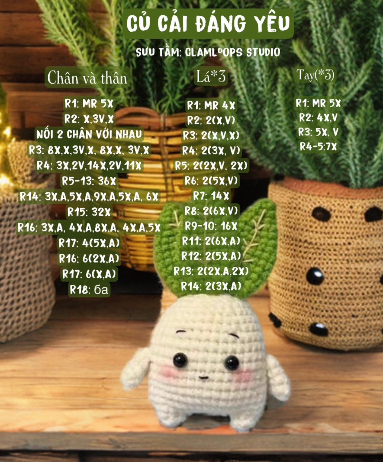 Hướng dẫn móc củ cải đáng yêu với biểu đồ chi tiết
