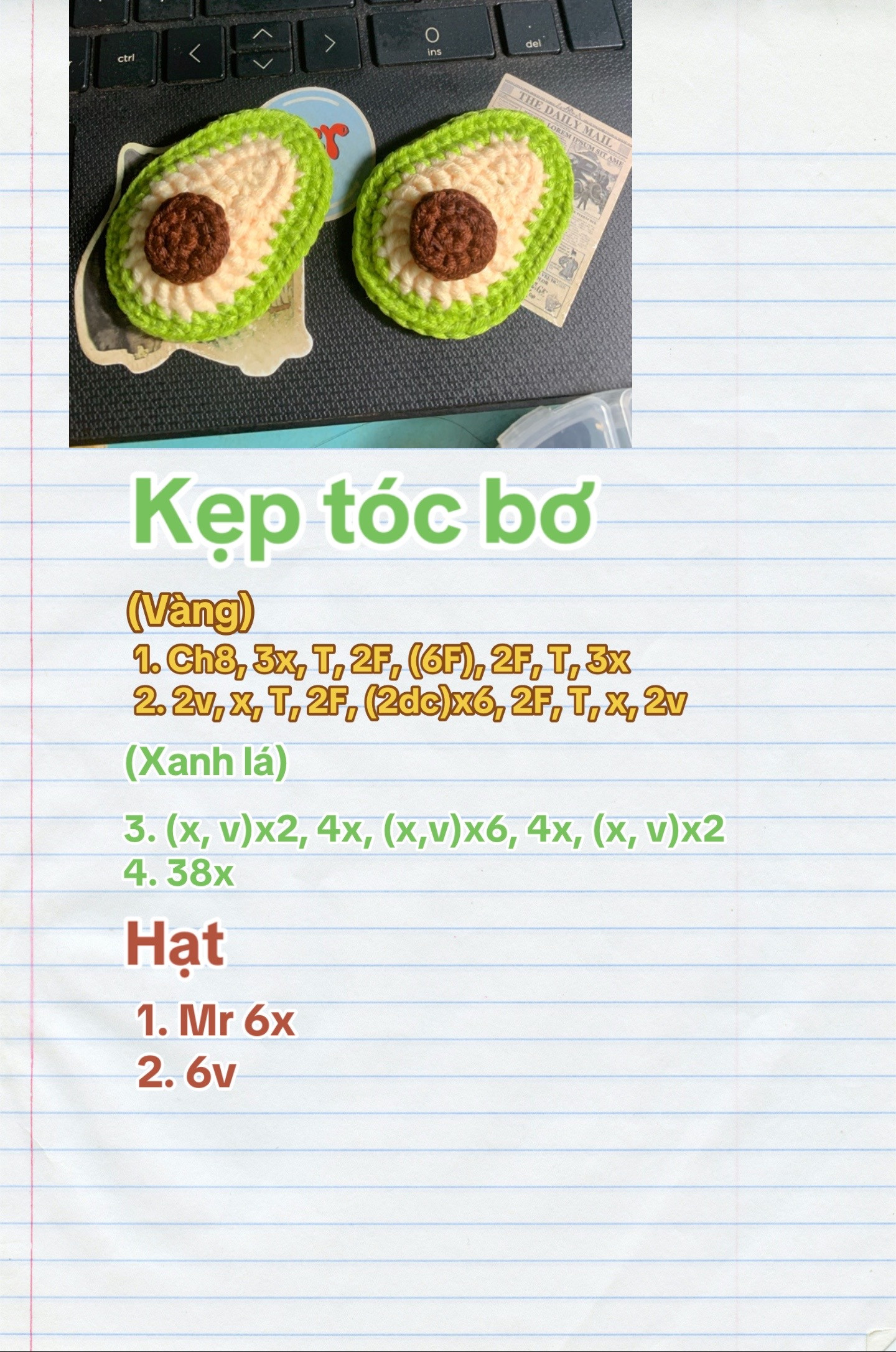 Hướng dẫn móc kẹp tóc hình quả bơ dễ thương và sáng tạo