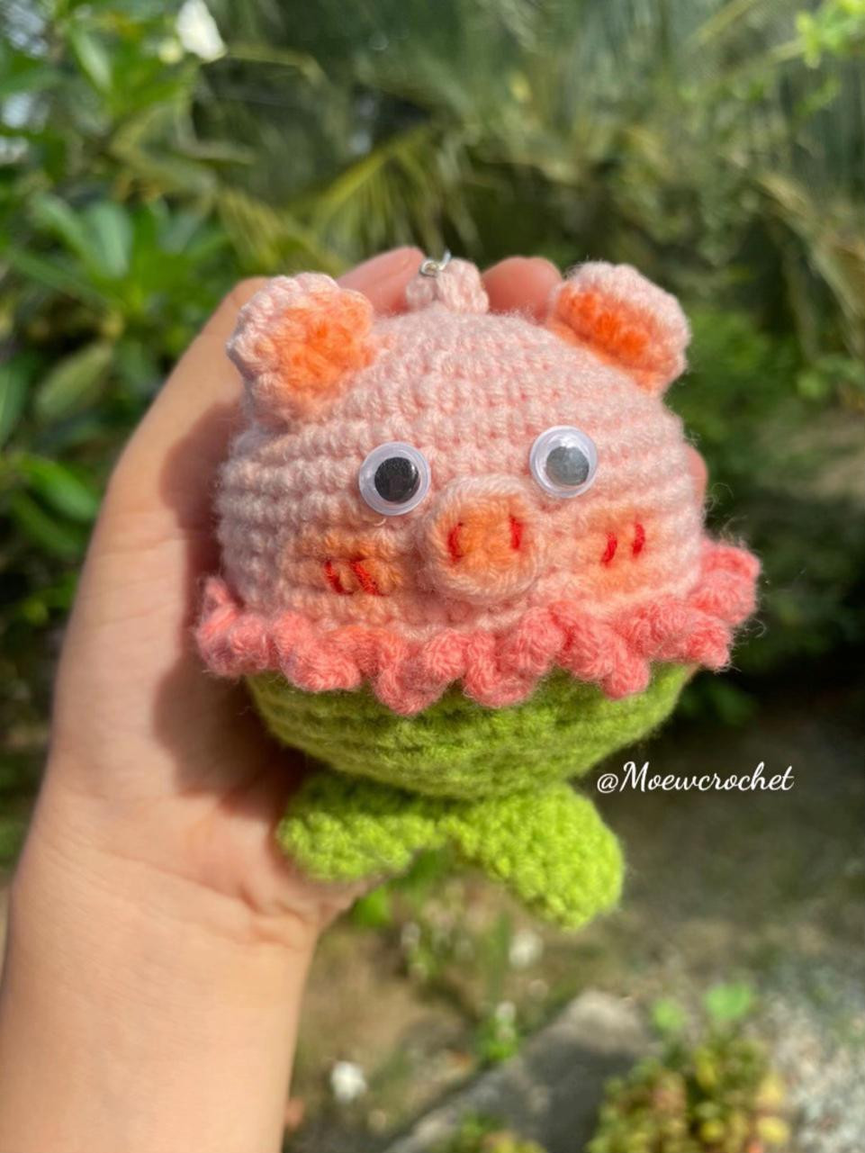 Hướng dẫn móc len con heo nhỏ dễ thương làm móc khóa