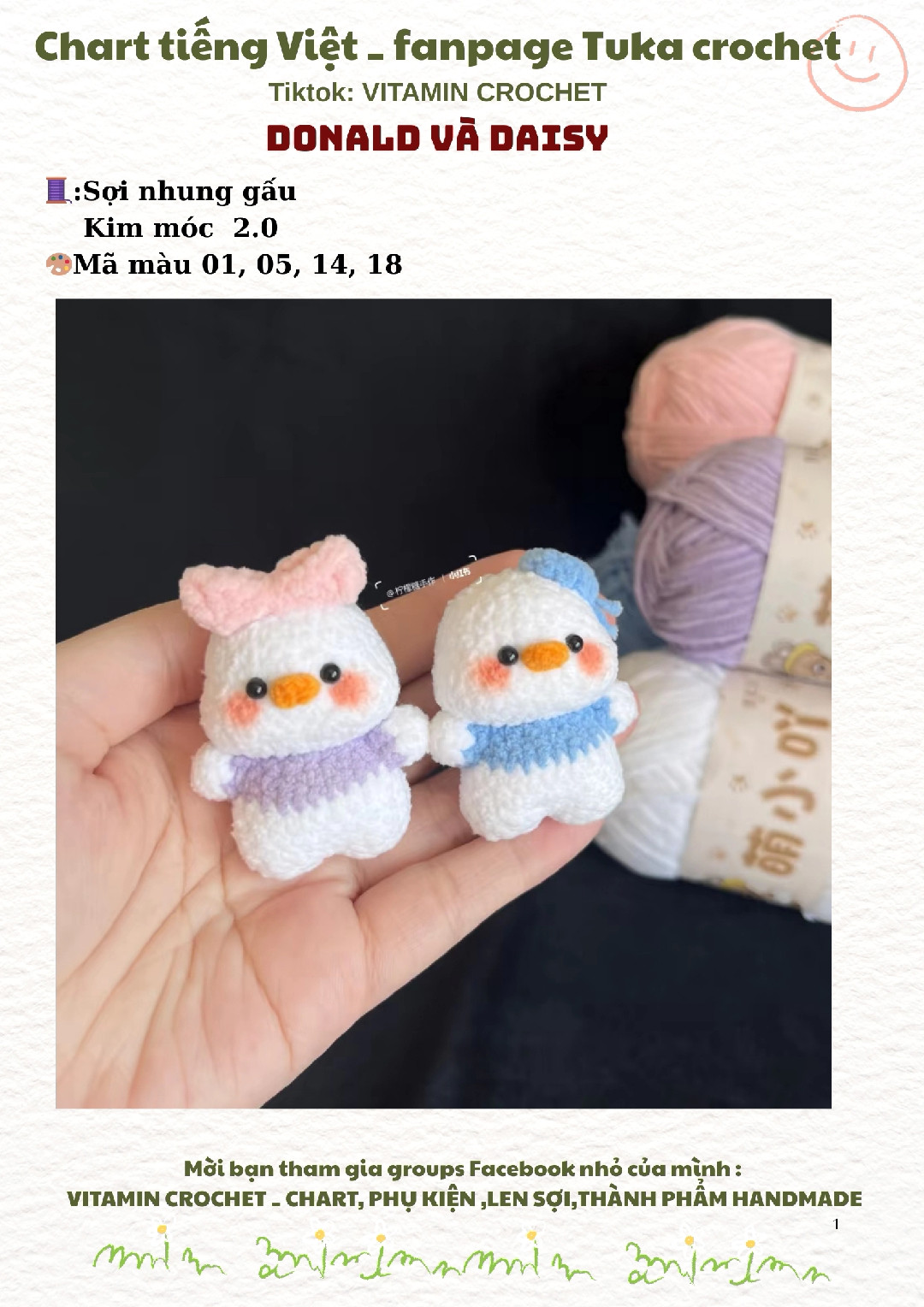 Hướng dẫn móc len Donald và Daisy dễ thương từ sợi nhung gấu