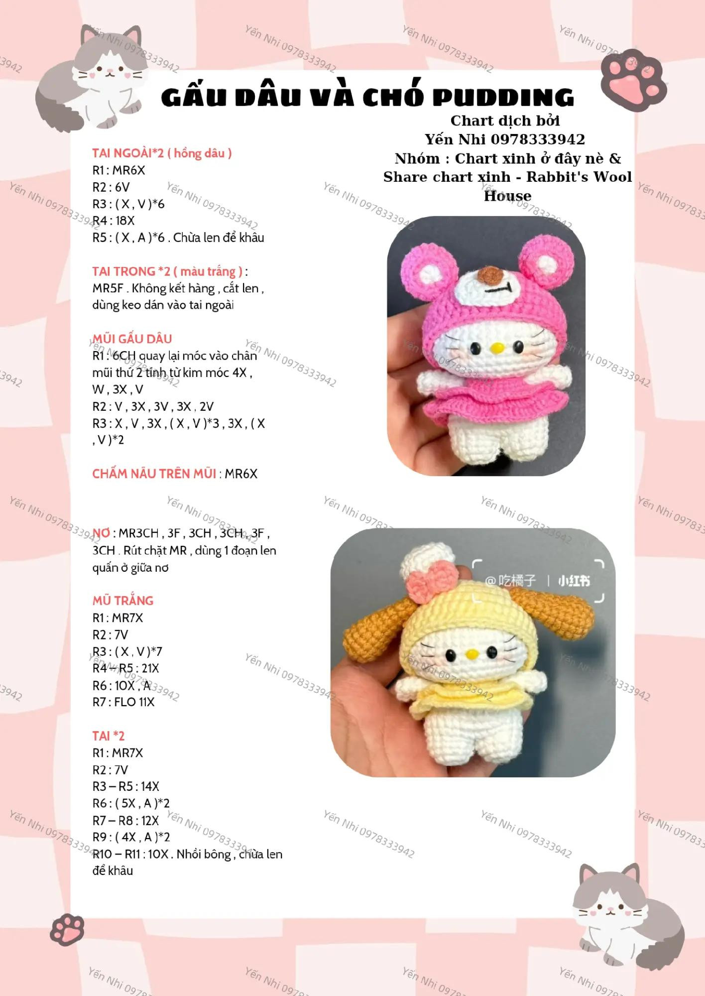Hướng dẫn móc len Gấu Đầu và Chó Pudding dễ thương