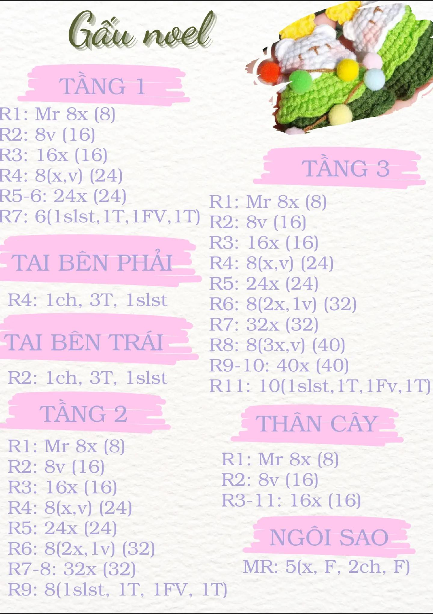 Hướng dẫn móc len gấu Noel với mô hình chi tiết từng phần
