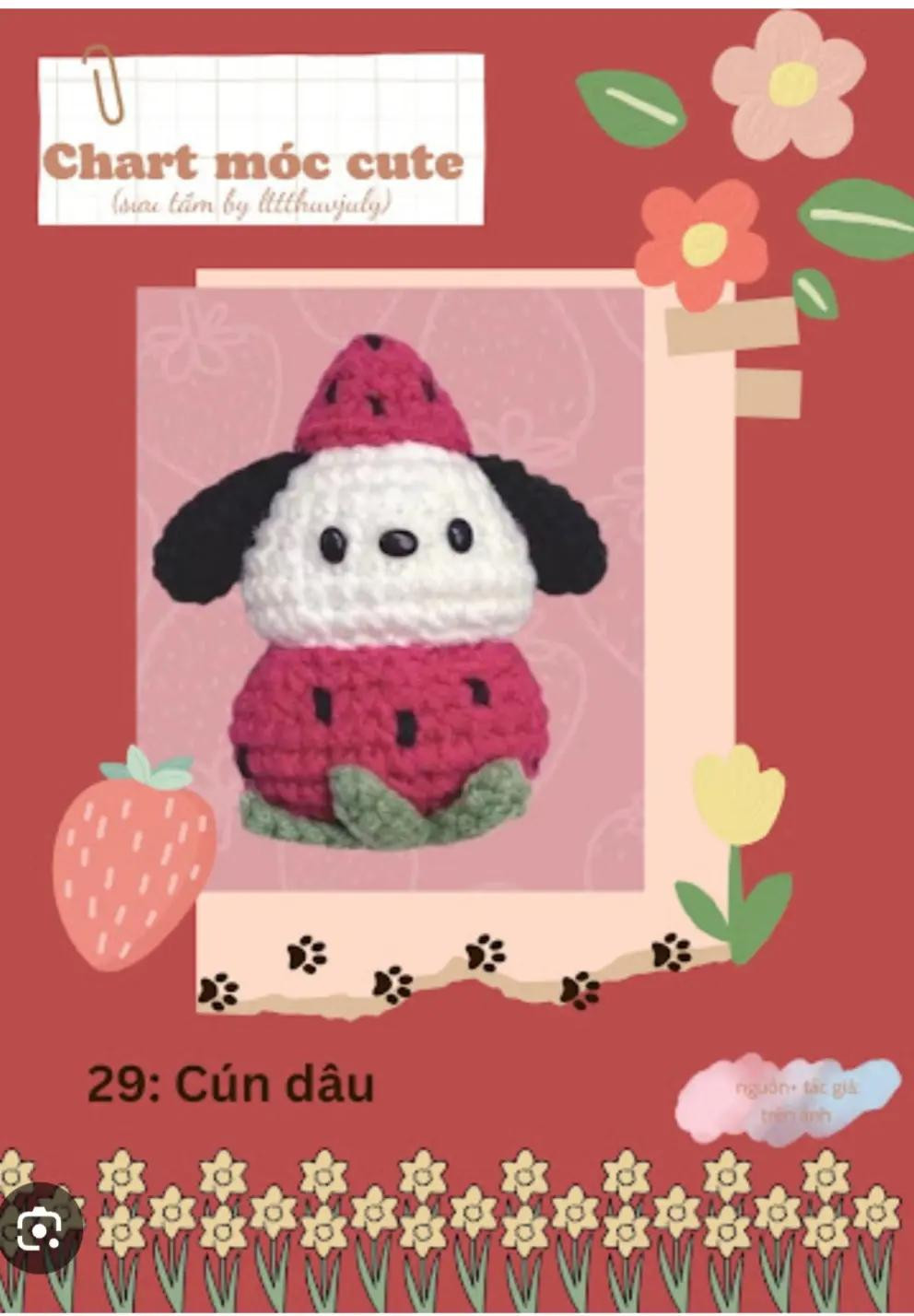 Hướng dẫn móc len hình cún dễ thương đội mũ dâu tây